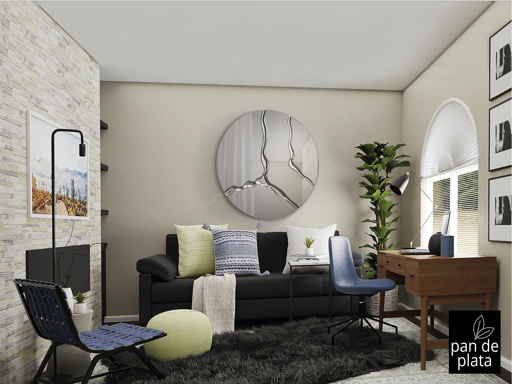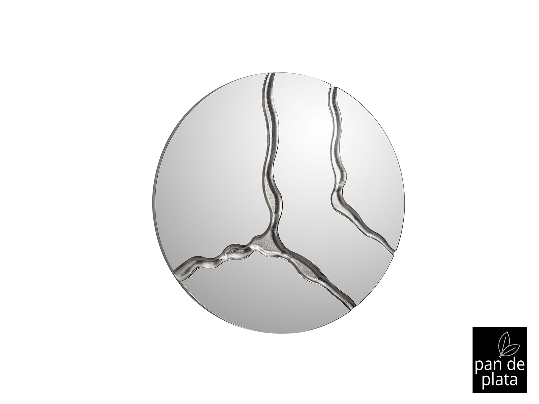 Espejo redondo con hendidura decorativa, con base de DM acabado en PAN DE PLATA.