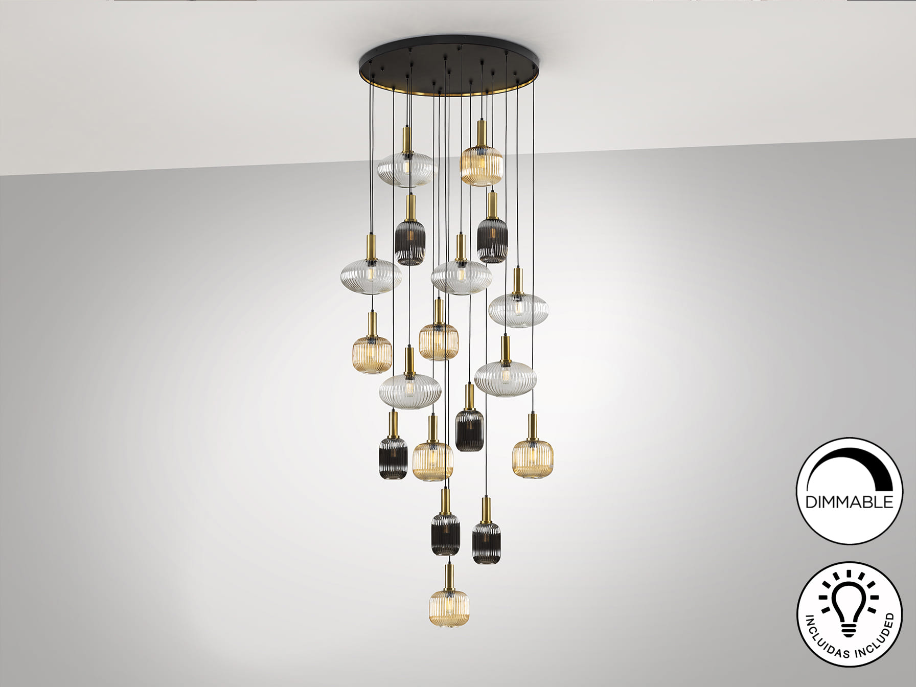 Colores: Negro, latón, 3 tonos cristal/
