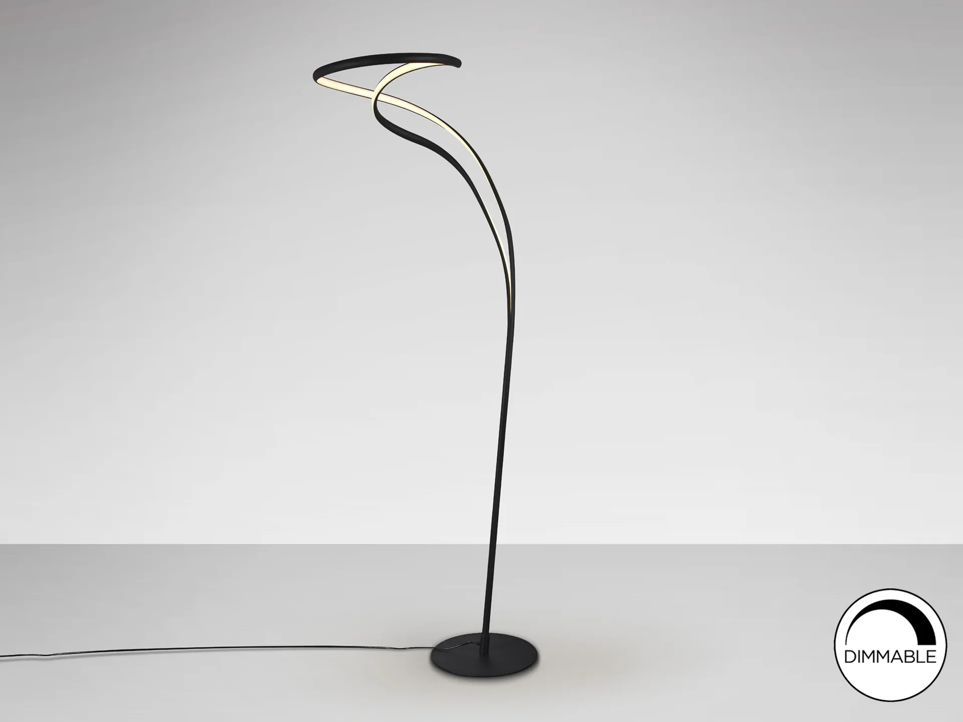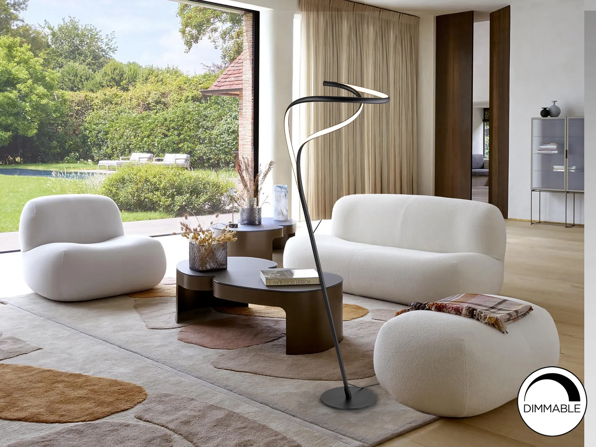 Lámpara de PIE realizada en metal y aluminio acabado negro mate arenado. Difusor opal de silicona. 39W LED. 2,044 lm. 3.000 K. DIMABLE
